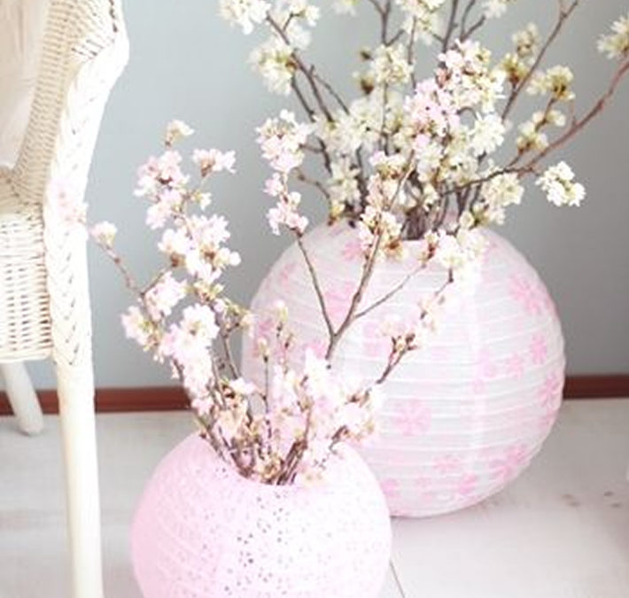 Se trata de las tradicionales lámparas de papel de arroz, solo que en este caso no estarán colgadas, las apoyaremos en el piso, una mesita o cualquier otro mueble. Por otra parte, no es necesario tener un enchufe cerca, ya que utilizaremos las velas led (nunca se deben utilizar las velas de cera encendidas, ya que podría provocar un incendio). Las flores son un plus que otorgan originalidad a la lámpara.