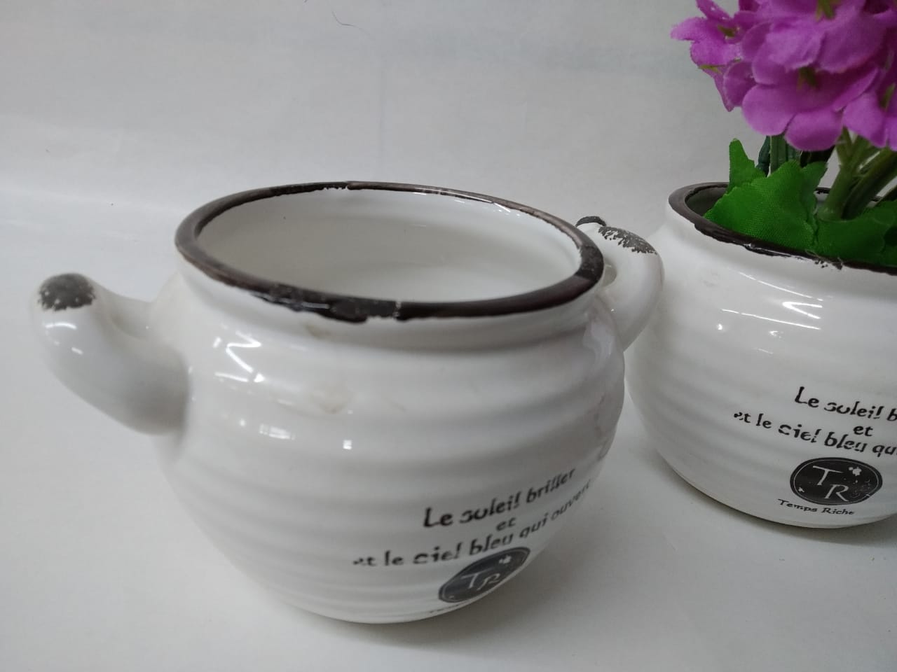 Maceta de cerámica con estampado vintage, (Las flores no están incluidas).