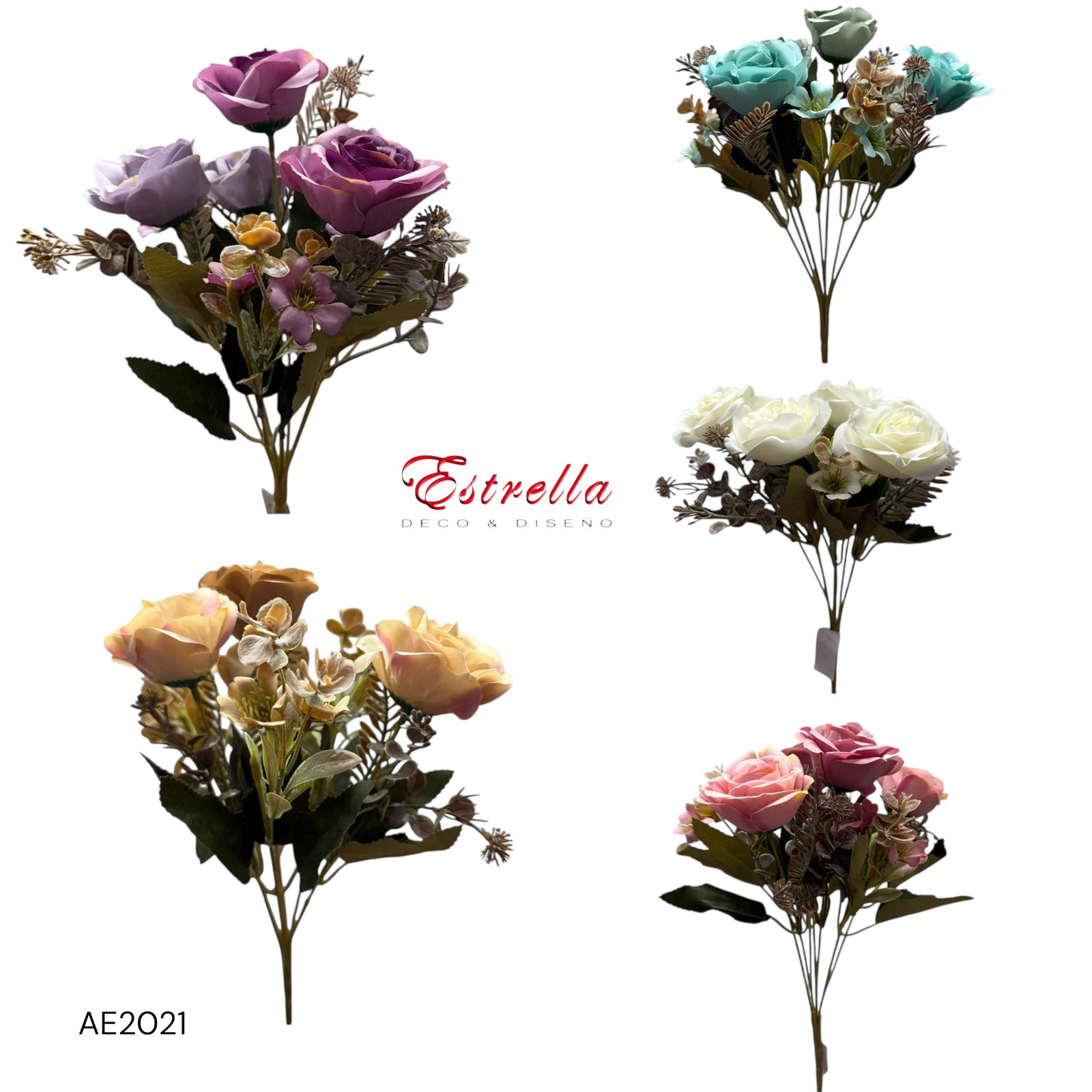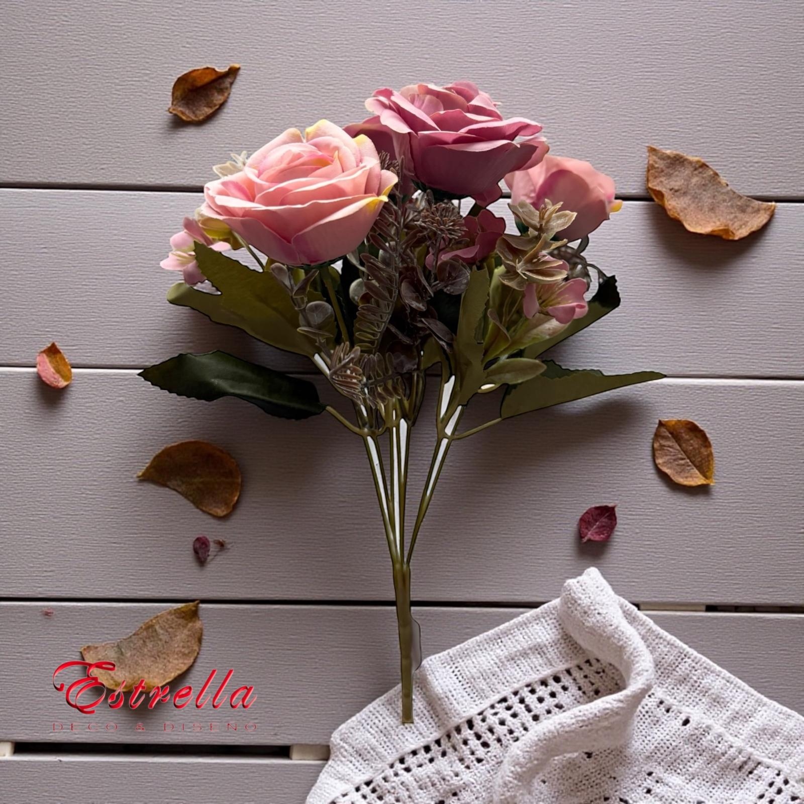 Ramos Rosas Artificiales Vintage Decoracion x6 cabecitas Estrella Deco