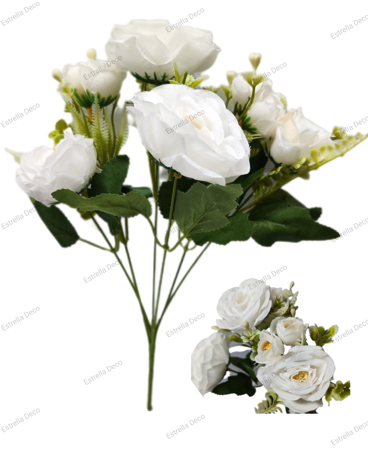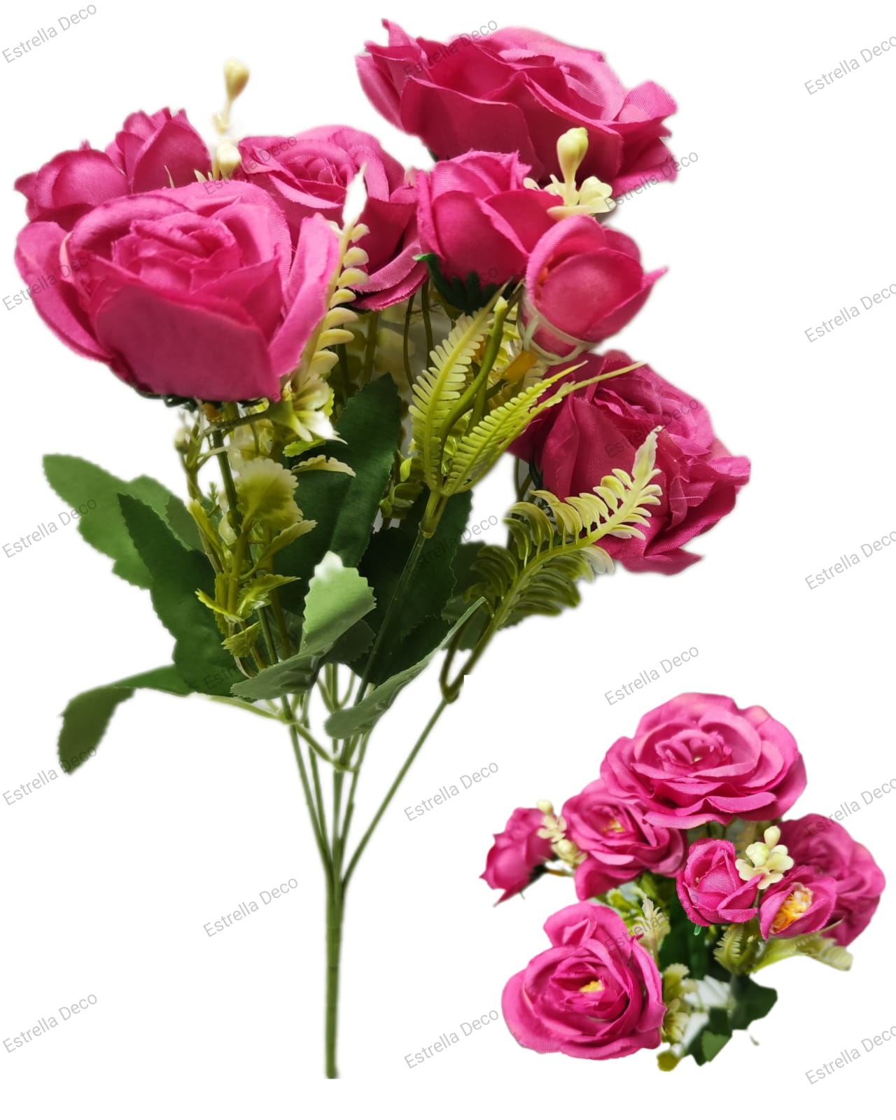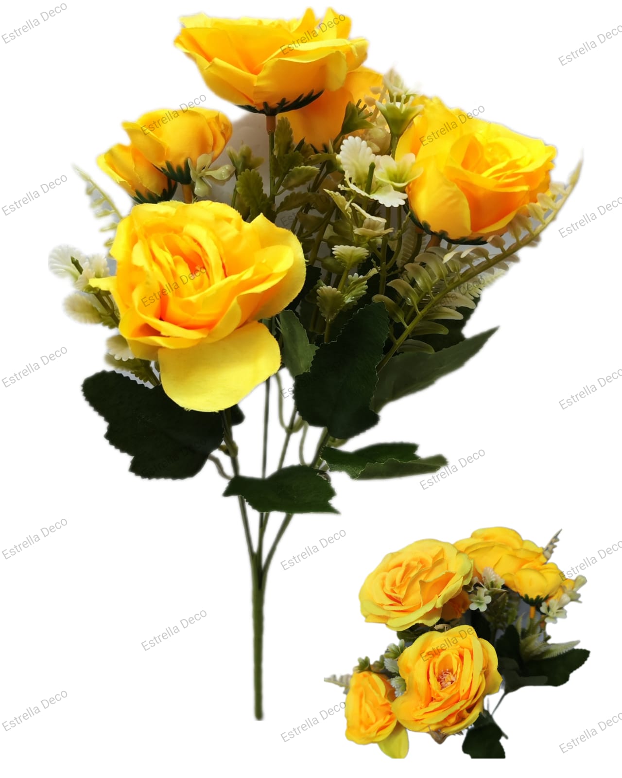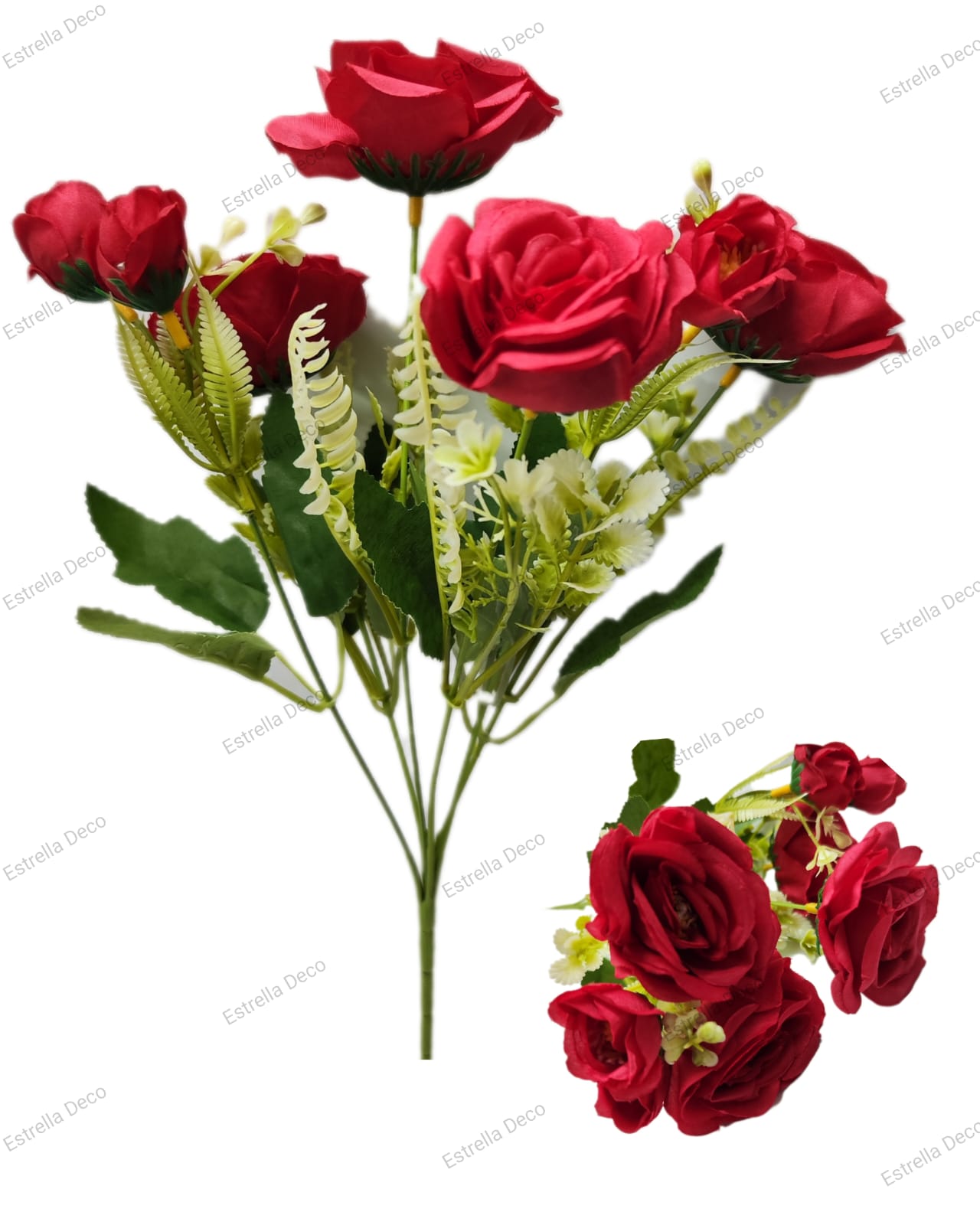 Ramo por 4 rosas, 4 pimpollos, follaje y helecho.