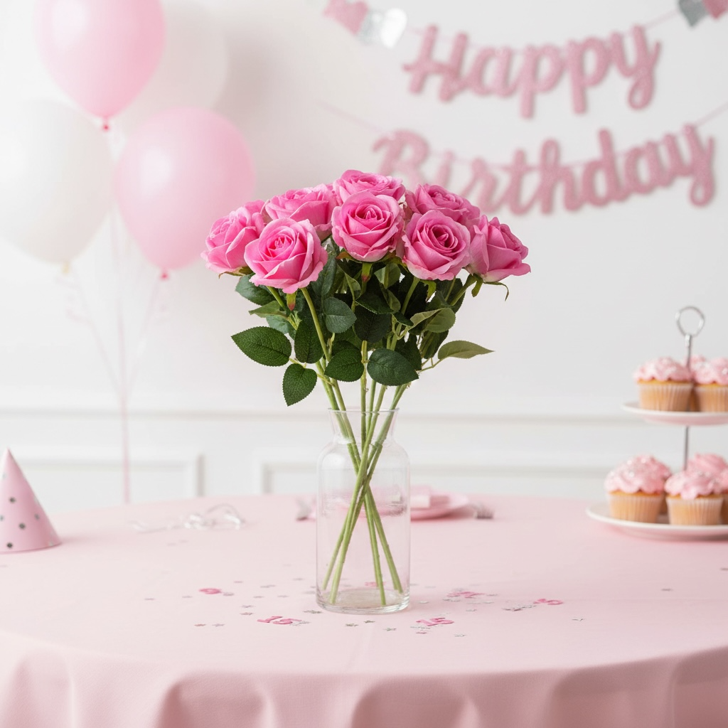 Ramo rosa artificial trae 3 rosas y 6 pimpollos
